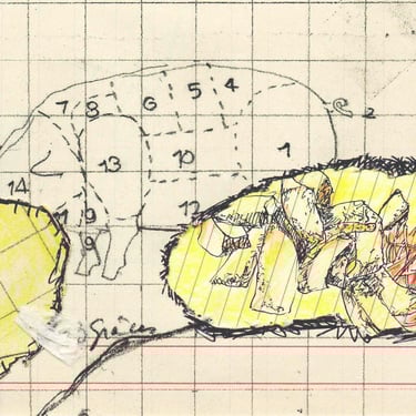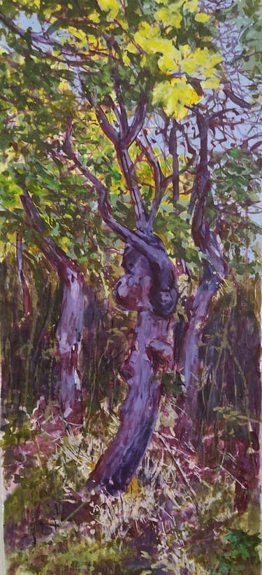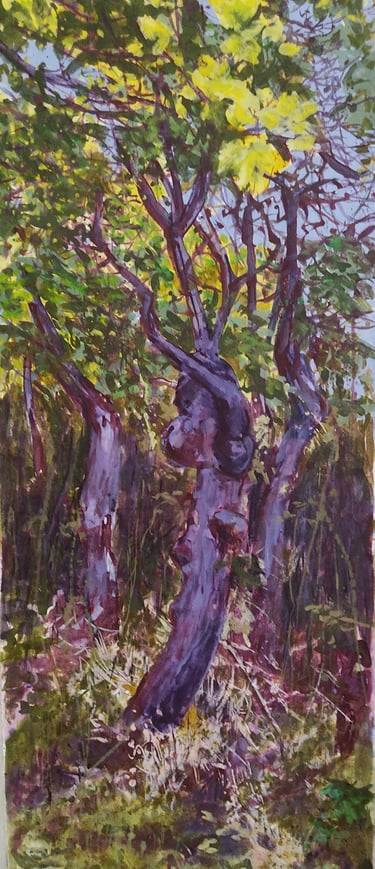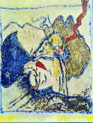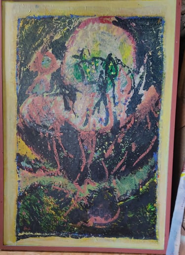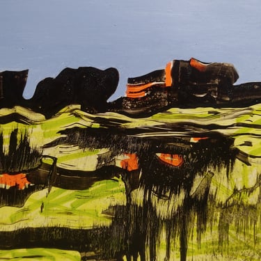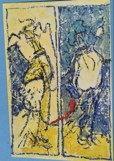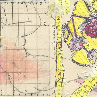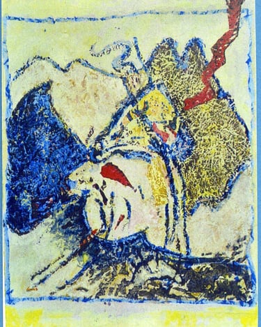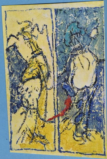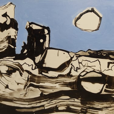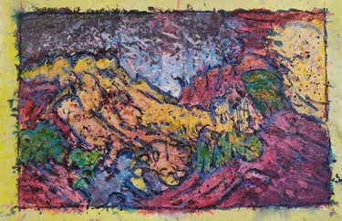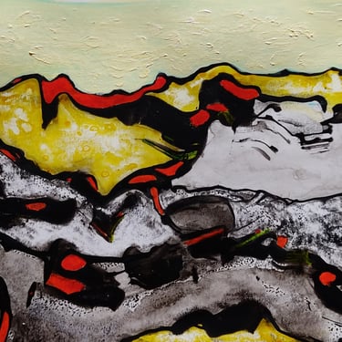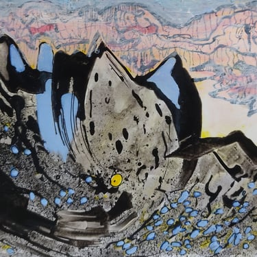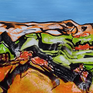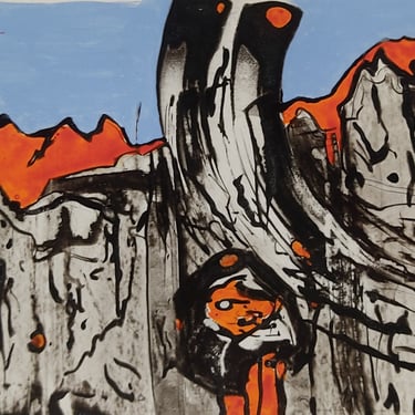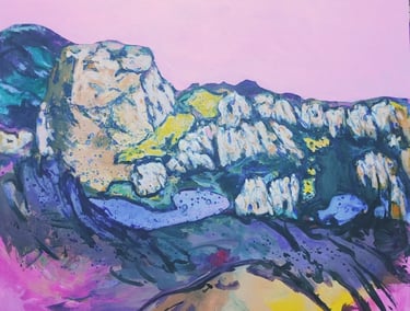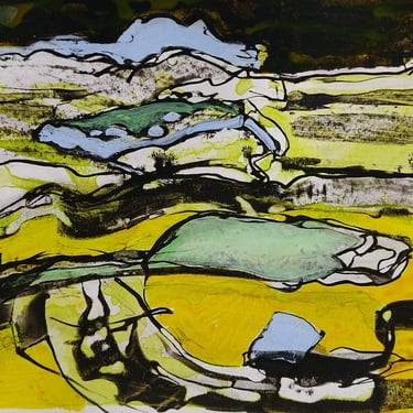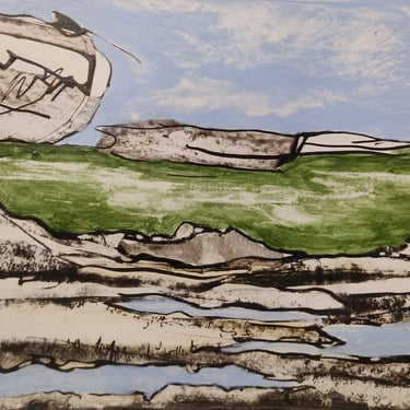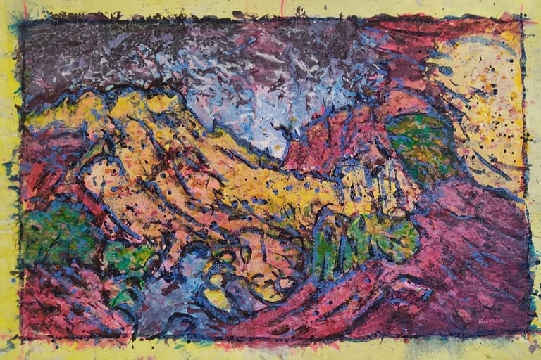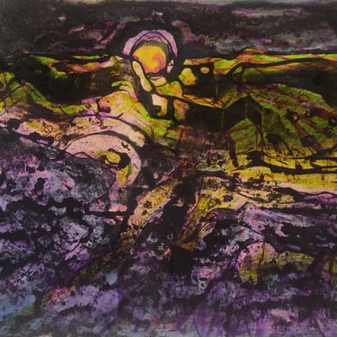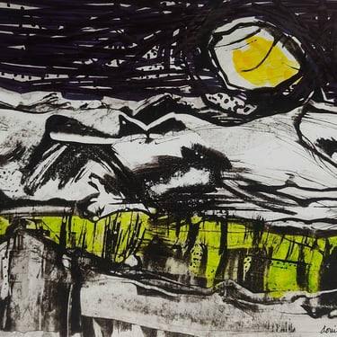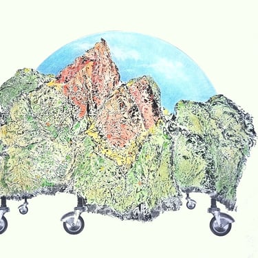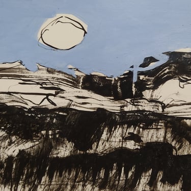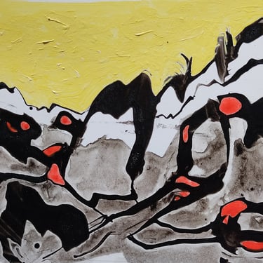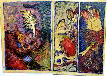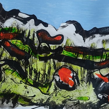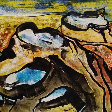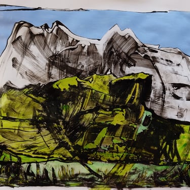 MONTAGNES Monotypes encre rehaussés de crayons de couleur +-50x40cm